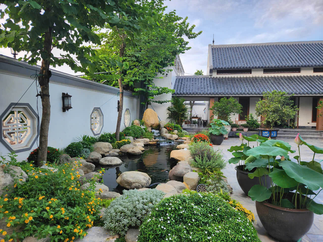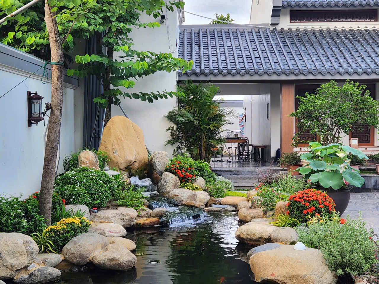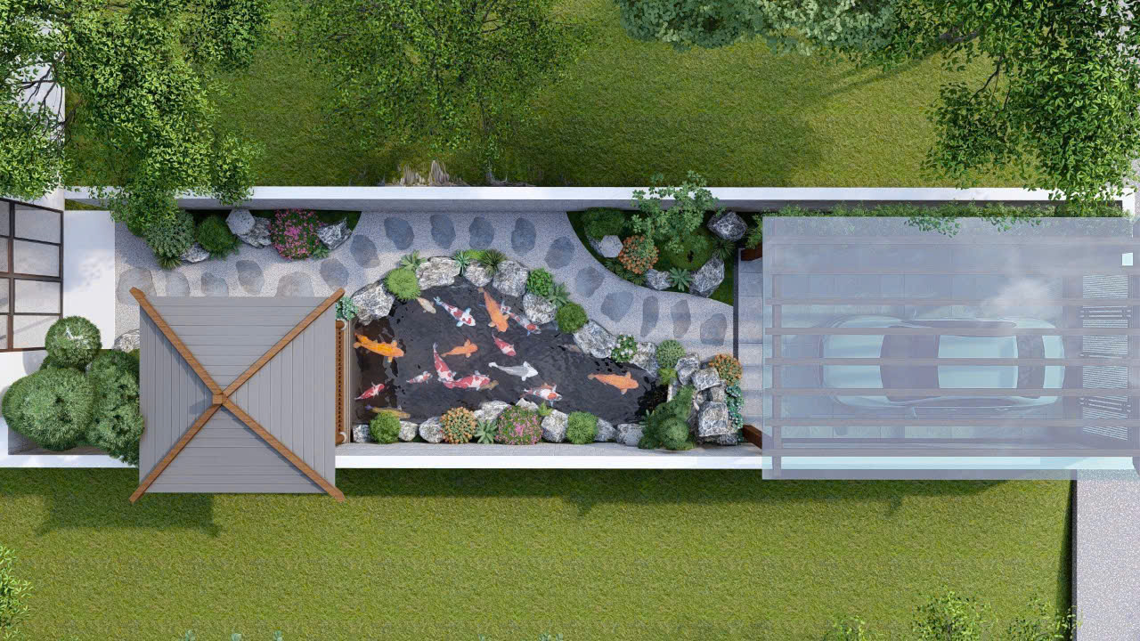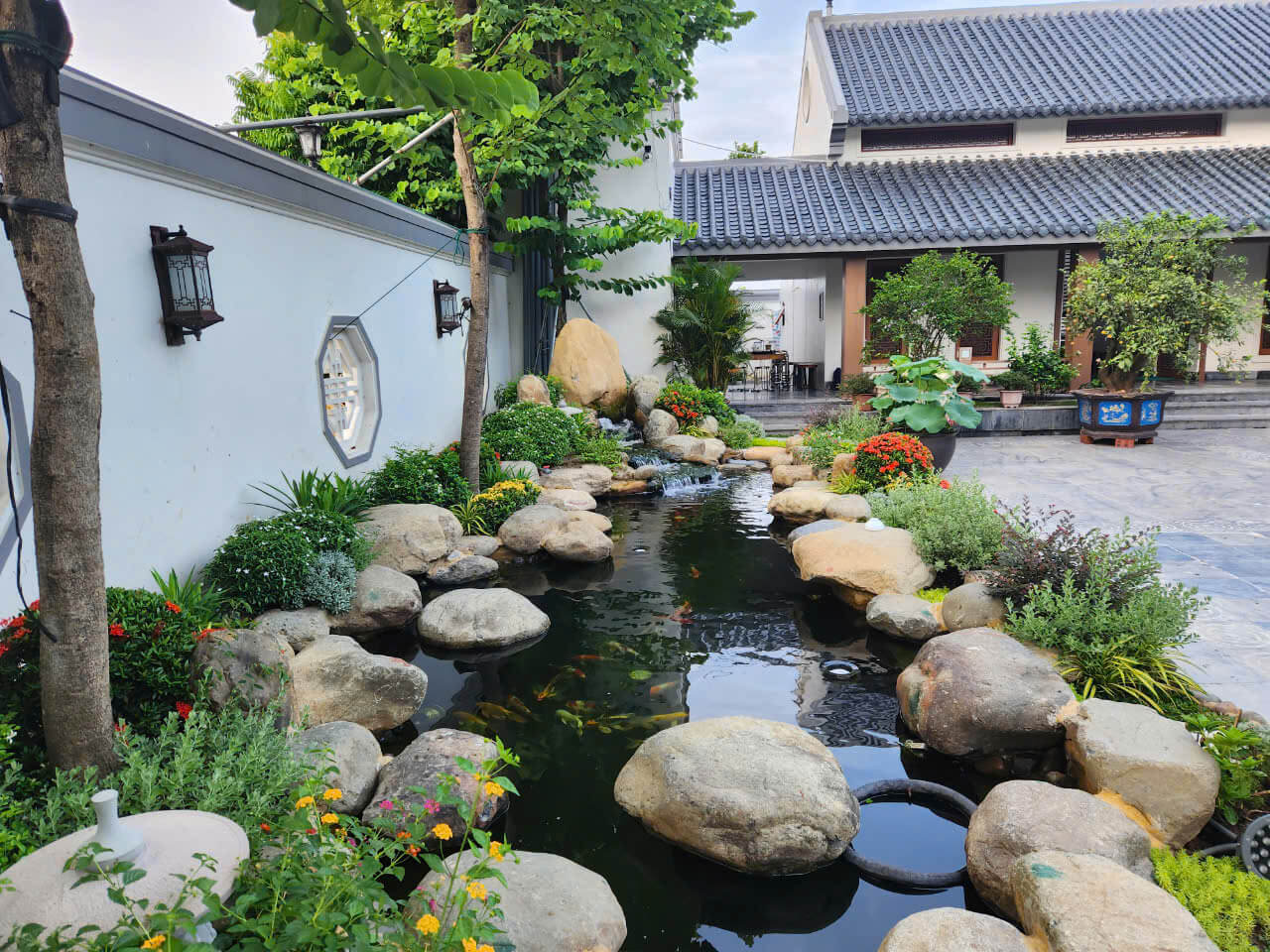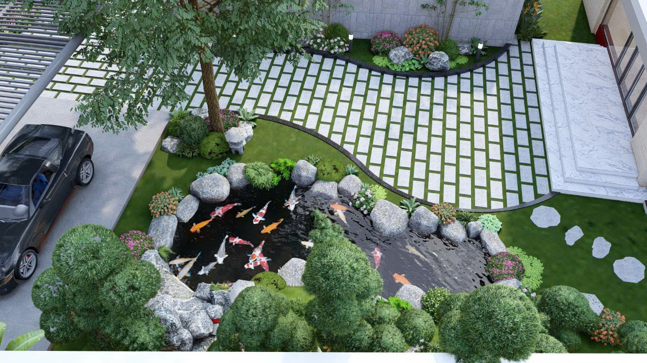 Thi công cảnh quan sân vườn kết hợp với hồ cá Koi